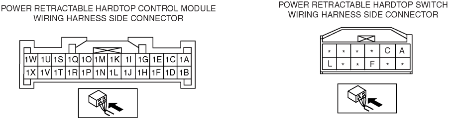 INSPECT THE WIRING HARNESS BETWEEN POWER RETRACTABLE HARDTOP CONTROL MODULE AND POWER RETRACTABLE HARDTOP SWITCH