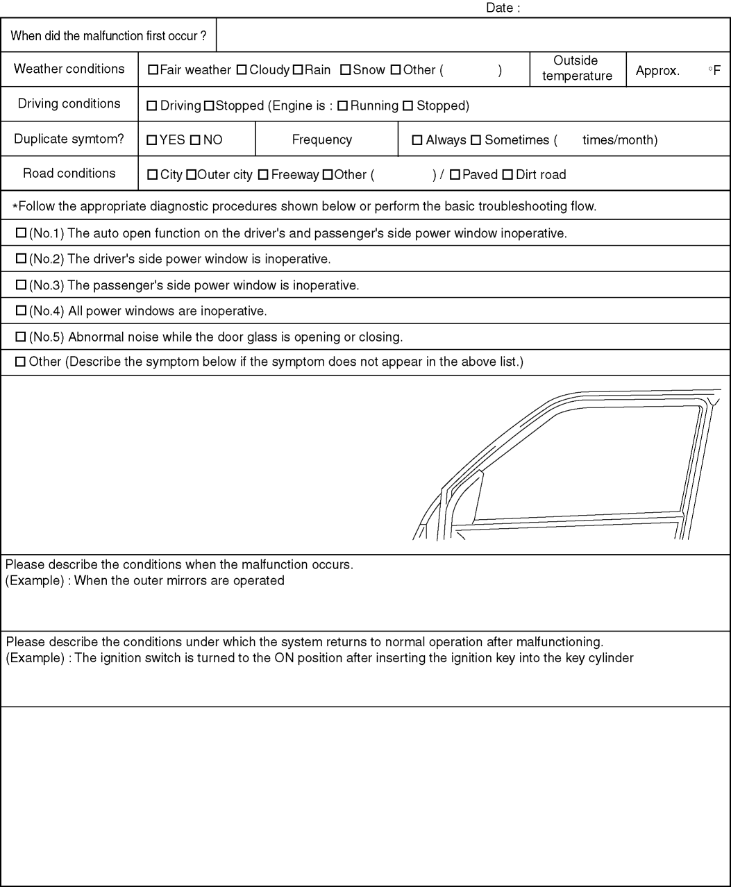 POWER WINDOW SYSTEM TROUBLESHOOTING QUESTIONNAIRE [POWER WINDOW SYSTEM]