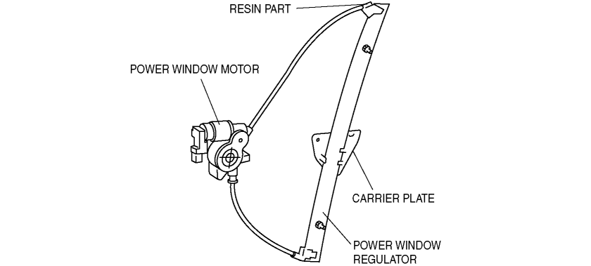 • Scratching, wear marks to the power window regulator resin part due to twisting of the cable.