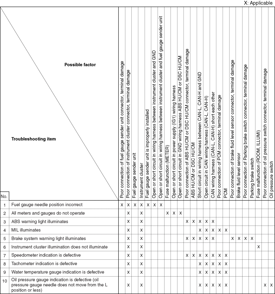 QUICK DIAGNOSTIC CHART [INSTRUMENT CLUSTER]