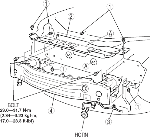 2. Remove the front bumper. (See FRONT BUMPER REMOVAL/INSTALLATION.)