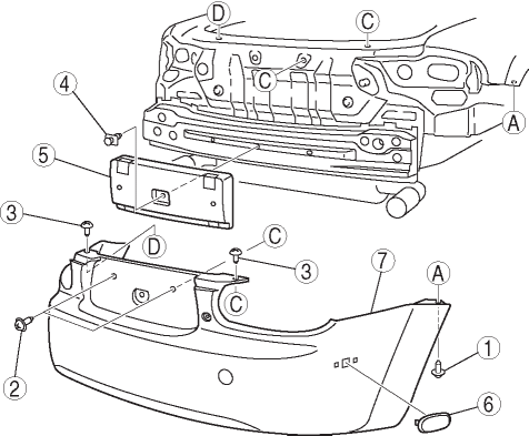When detaching the rear bumper from the bumper slider, the rear bumper could fall and be damaged. Secure the rear bumper so that it does not fall.