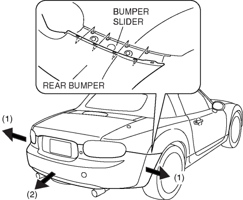 1. Pull the rear bumper ends (wheel arch) outward to detach from the bumper slider.CAUTION: