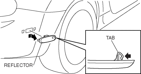 1. Lift the reflector up in the direction of the arrow, then unhook it from rear bumper.
