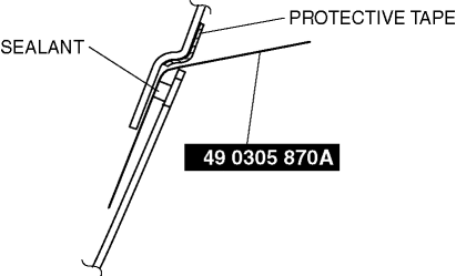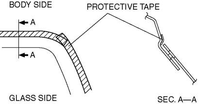 Before removing the rear window glass from the body, mark the position of the glass by affixing tape to the glass and body panel.