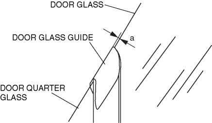 9. Adjust the clearance between the upper edge of the door glass and the door glass guide.