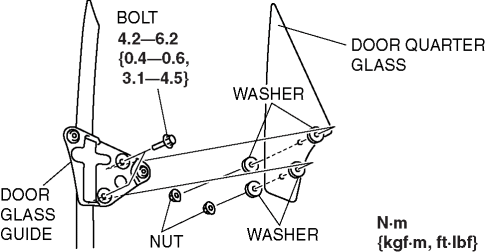 6. Remove the door glass.(See DOOR GLASS REMOVAL/INSTALLATION.)