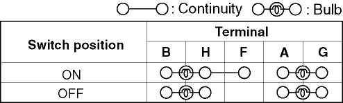 1. Verify that the continuity between the seat warmer switch terminals is as indicated in the table.