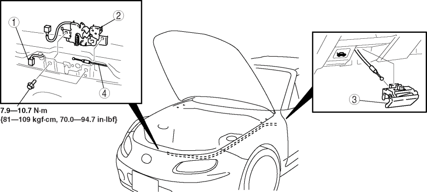 3. Under the condition in Step 2, pull the hood release lever outward, then remove it from the dashboard.