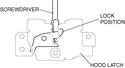 5. Lock the hood latch using a flathead screwdriver or equivalent as shown.