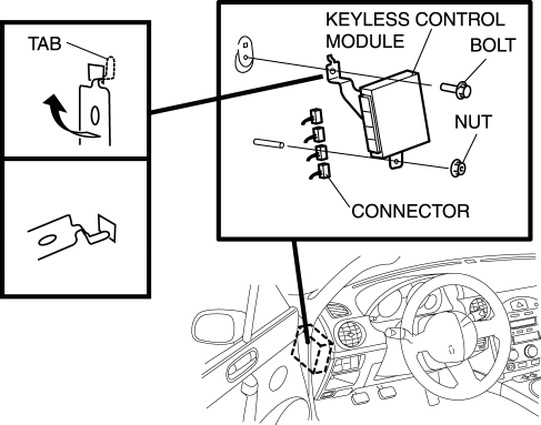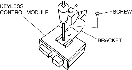 The screw which fixes the keyless control module and bracket is for a body ground connection. Be sure to secure the screw when installing.