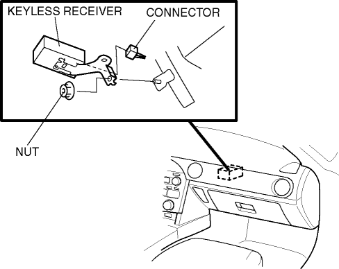 4. Remove the nut, then remove the keyless receiver (front).