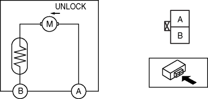 1. Apply battery positive voltage and connect the ground to the corresponding the trunk lid opener terminals, and inspect the trunk lid opener operation.