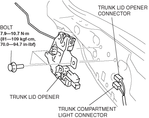 4. Disconnect the trunk lid opener connector and the trunk compartment light connector.
