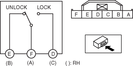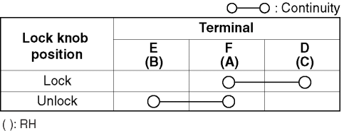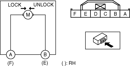 2. Apply battery positive voltage and connect the ground to the corresponding door lock actuator terminals and inspect the door lock actuator operation.