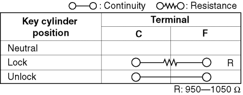2. Inspect for continuity between the door lock-link switch terminals.