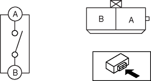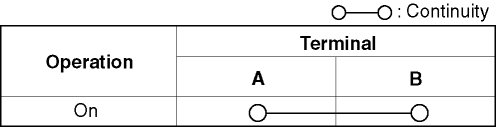 2. Inspect for continuity between the trunk lid open switch terminals. If not as specified, replace the trunk lid open switch.