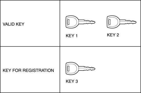 • The keys (two or more keys) readied before beginning the procedure do not have to be new keys. Any key that is capable of starting the engine before beginning the procedure can be used.