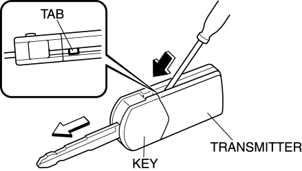 1. Insert a small screwdriver into the slot and push the tab to remove the key from the transmitter.