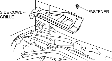2. Remove the cowl grille. (See COWL GRILLE REMOVAL/INSTALLATION.)