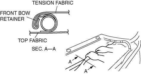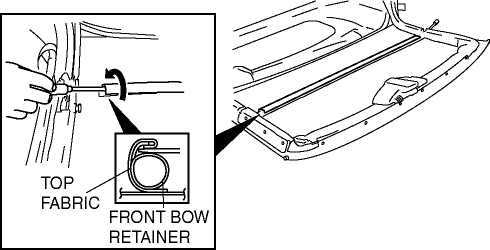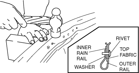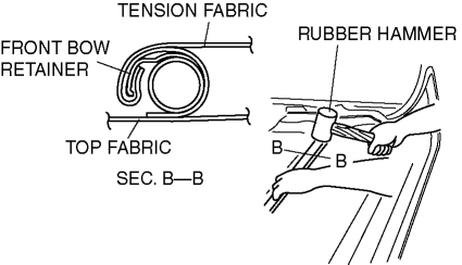 7. Secure the top fabric to the front bow retainer using a rubber hammer.