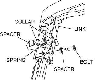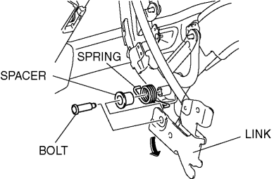2. Pull the link in the direction of the arrow to remove the spacer and spring.