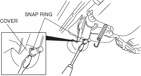 1. Insert a tape-wrapped flathead screwdriver between the cover and snap ring, and remove the snap ring by prying along the perimeter so as not to damage the snap ring.