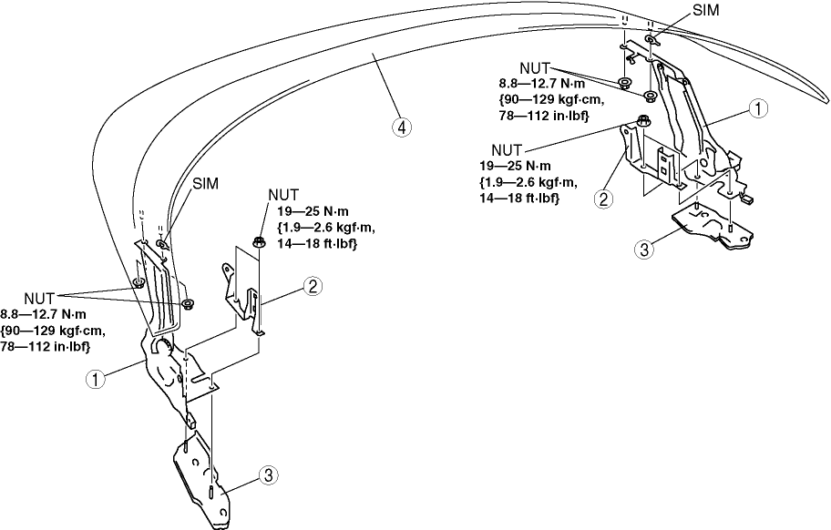 3. Refer to DECK PANEL ADJUSTMENT and verify that the gap and height difference between the deck panel, trunk lid, and back window glass are within the specifications. Adjust the power retractable hardtop if necessary. (See DECK PANEL ADJUSTMENT.)