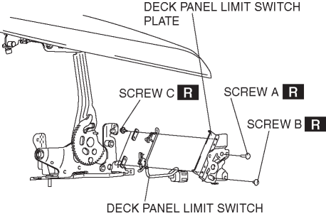 6. Remove the deck panel motor. (RH) (See DECK PANEL MOTOR REMOVAL/INSTALLATION.)