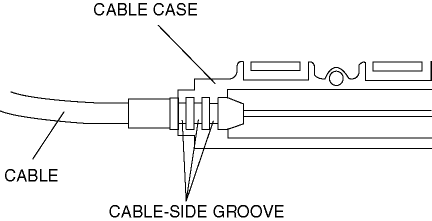 3. Open the cable case cover and disconnect the cable while pressing the cable in the direction of the arrow. (See Roof Hook Install Note.)