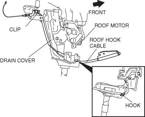11. Remove the roof hook cable from the hook and clip shown in the figure.