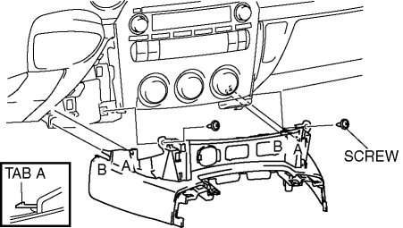6. Pull the console panel outward and detach tabs A and pins B.