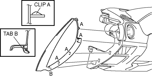 2. Pull the side panel rearward and detach tab B from the dashboard.