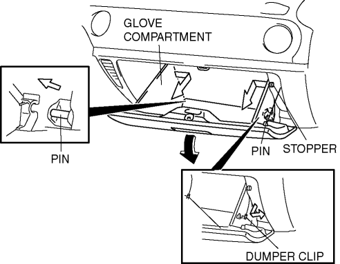 3. Turn the glove compartment downward and pull the pins.