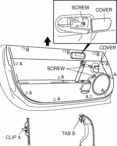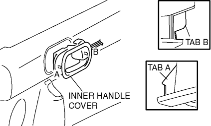 6. Pull the door trim upward and detach tabs B from the door.