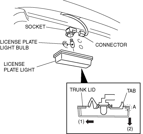 4. Pull area A of the license plate light in the direction of the arrow (2) and remove the license plate light.