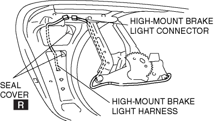 4. Remove the wiring harness and connector of the high-mount brake light from the deck panel.