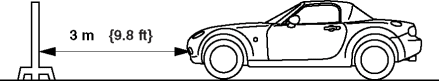 7. Line up the headlights with the white screen at a distance of 3 m {9.8 ft} apart.