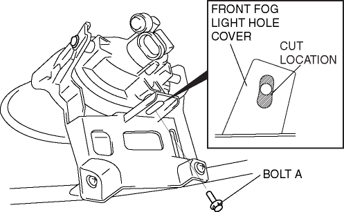 3. Remove the bolt A and cut the front fog light hole cover at the position shown in the figure.