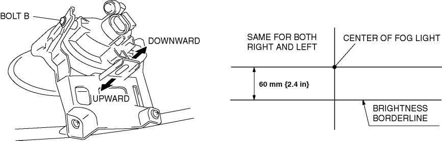 11. Loosen the bolt B, move the front fog light in the direction of the arrows, and adjust the center of