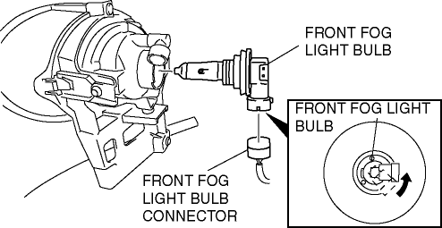 5. Disconnect the front fog light bulb connector and remove the front fog light bulb by turning it in the direction of the arrow.CAUTION: