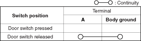 2. Verify that the continuity between door switch terminal and the body ground is as indicated in the table.