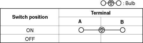 1. Verify that the continuity between the trunk compartment light terminals is as indicated in the table. If not as indicated in the table, replace the trunk compartment light.
