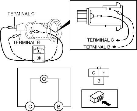 1. Connect a tester as shown in the figure and verify that there is continuity.