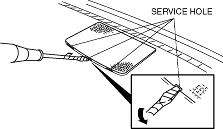 1. Insert a tape-wrapped flathead screwdriver into the service hole.