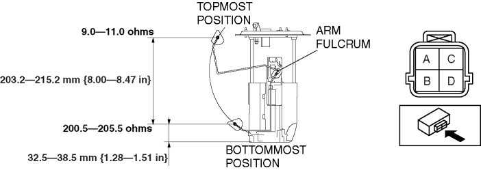 If they are not as indicated, replace the fuel gauge sender unit.